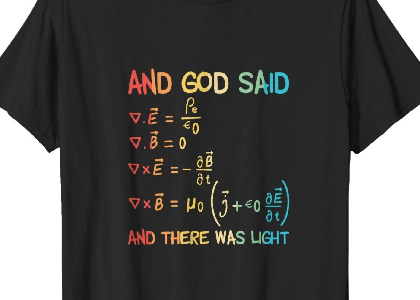 This beginning point is now known to have been accompanied by an energetic expansion - a “Big Bang”3 - which within picoseconds was suffused with high-intensity photons mediating the furious energy exchanges between particles boiling in the hot primordial plasma, as the electromagnetic force diverged from the weak nuclear force. Ergo: “Let there be light.” In my time (not sure about now), Christian students at MIT often wore T-shirts emblazoned with Maxwell’s equations4: